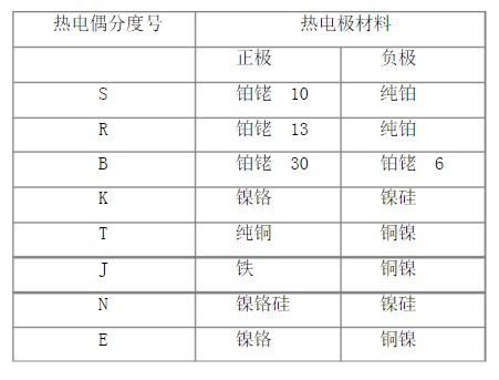 常用的熱電偶材料有: